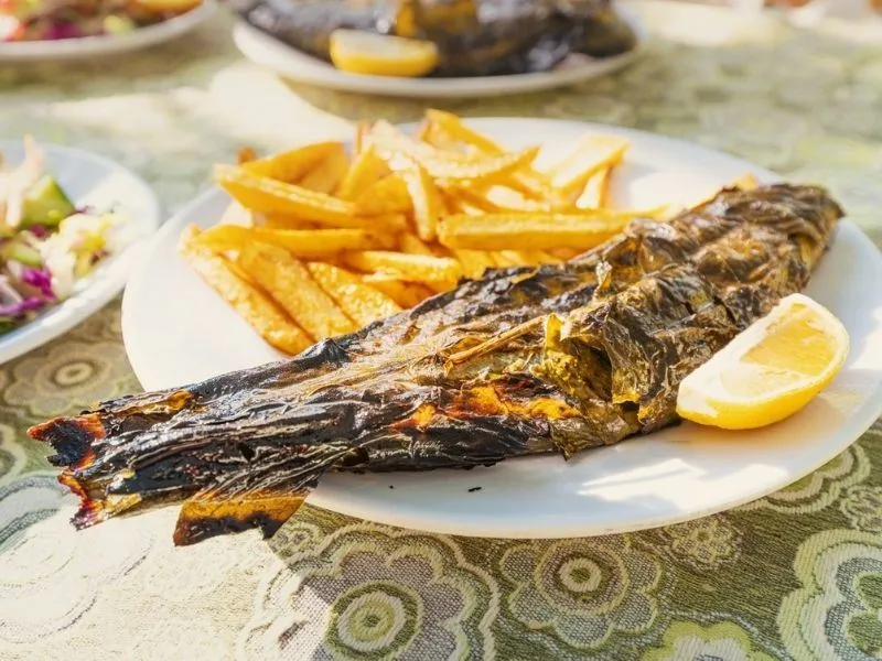 - Balıklar iyice temizlendikten sonra ayrı bir hapta hurmalar portakal suyu ve limon suyu ile ateş üzerinde püre yapılır.