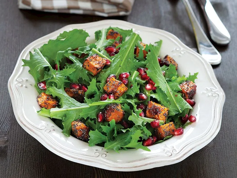 Balkabağı, roka, nar ve cevizli sosun uyumuyla hazırlanan bu salata, hem doyurucu hem de vitamin deposu!