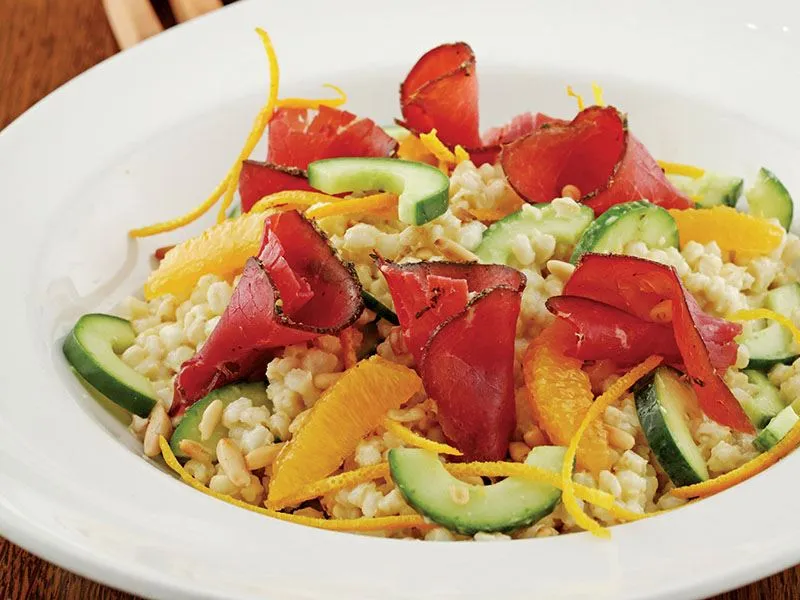 bresaola, buğday salatası, yeşil salata, italyan salata, salata tarifleri, hafif yemek, doyurucu salata, pratik salata, kolay tarif, portakallı vinegret, vinegret tarifi, salatalık, dolmalık fıstık, portakal, sağlıklı salata, diyet salata, yaz salatası, özel salata, gurme salata, misafir sofrasıEkran görüntüsü al