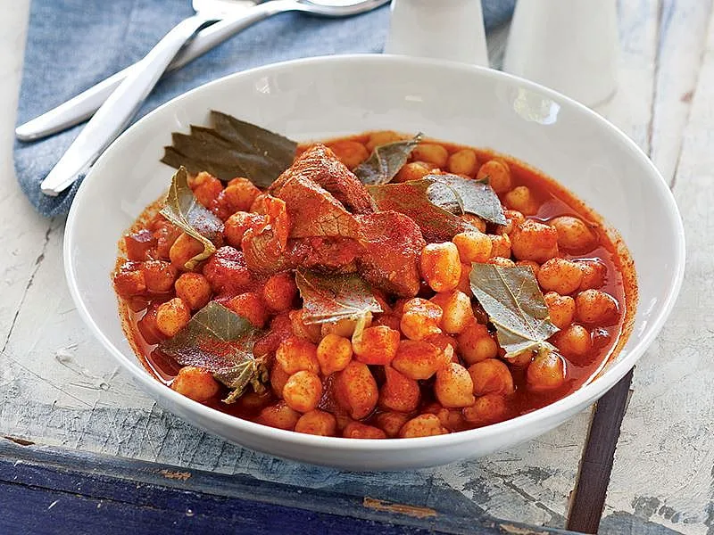 Nohut ve gendimeyi akşamdan ıslatın. Sularını değiştirip ayrı tencerelerde haşlayın ve süzün. Asma yaprağını haşlayın. Kevgirle süzgece alıp suyunu süzün ve ince ince doğrayın. Soğanların kabuklarını soyup küp şeklinde doğrayın. Tencerede tereyağını eritip soğanı pembeleşinceye kadar kavurun. Eti ilave edip kavurmaya devam edin. Salçayı 1 kaşık suyla ezip tencereye ekleyin. Asma yaprağı, nohut ve gendimeyi ilave edip karıştırın. Üzerine çıkacak kadar su ekleyip kapağı kapalı olarak pişirin. Sıcak olarak servis yapın. Afiyet olsun.