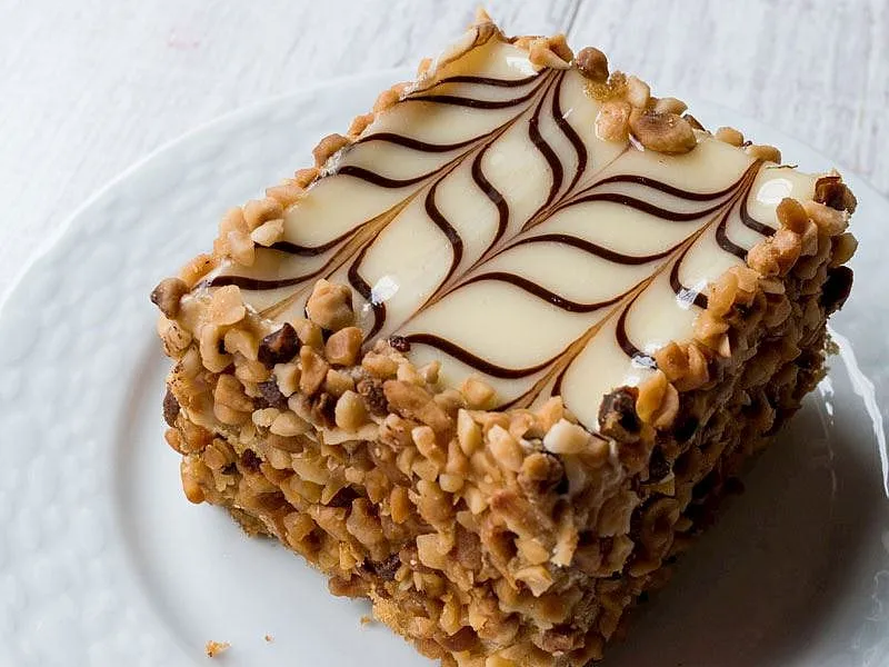 - Hazırlanan pastanın üzerine beyaz çikolata dökülerek etrafı kaplanır.