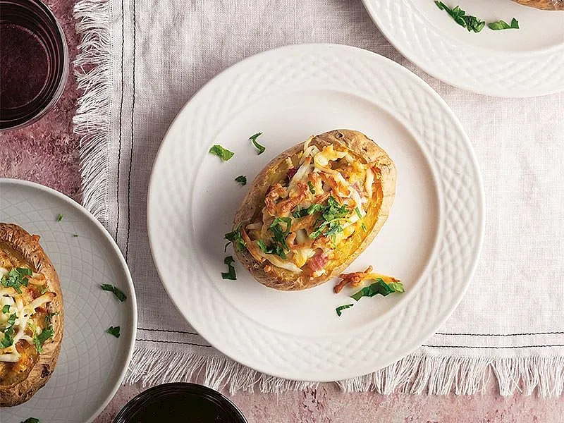 - Patatesleri fırından aldıktan sonra üst kısımlarını yatay olarak kesin, içlerini de bir kaşık yardımıyla oyup çıkarın ve bir kaba aktarın.