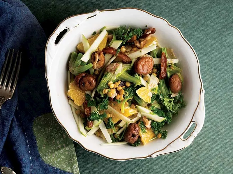 Maraş tarhana cipsi ve ıspanak köklerinin buluştuğu bu özel salata, yeşil mercimek, kayısı ve kestane ile zenginleşiyor. Farklı sosuyla hem sağlıklı hem de çok lezzetli!
