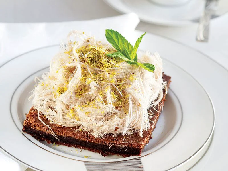 - Keki dilimleyin ve üzerine pişmaniye ekleyerek servis yapın.