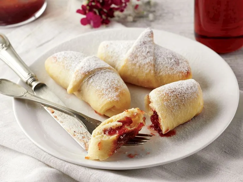 - Üçgenlerin içine birer tatlı kaşığı kadar marmelat koyup rulo şeklinde sarın.