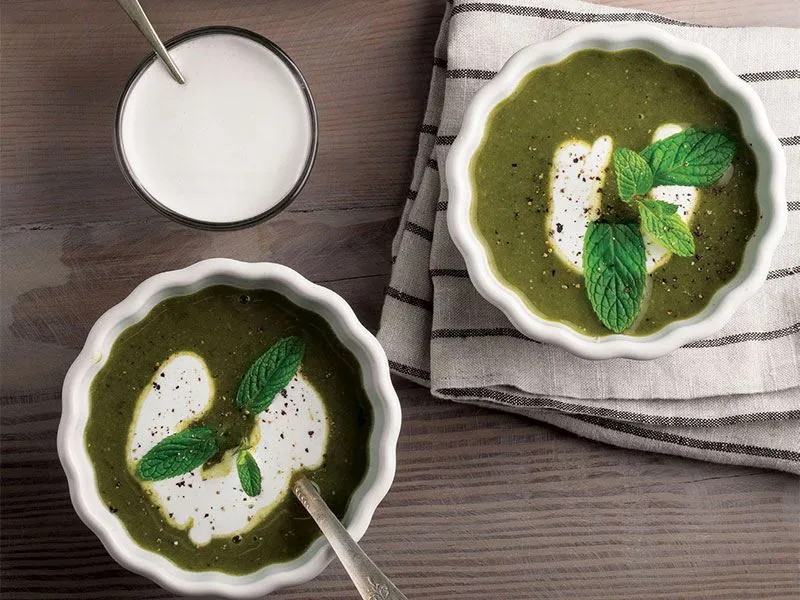 - Üzerini taze nane, krema ve değirmen karabiber ile süsleyerek sıcak servis yapın.