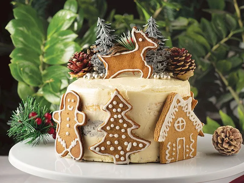 - Süslemek için daha önceki tarifte hazırladığınız gingerbread yılbaşı kurabiyelerini kullanabilir veya arzu ettiğiniz malzeme ile süsleyebilirsiniz.